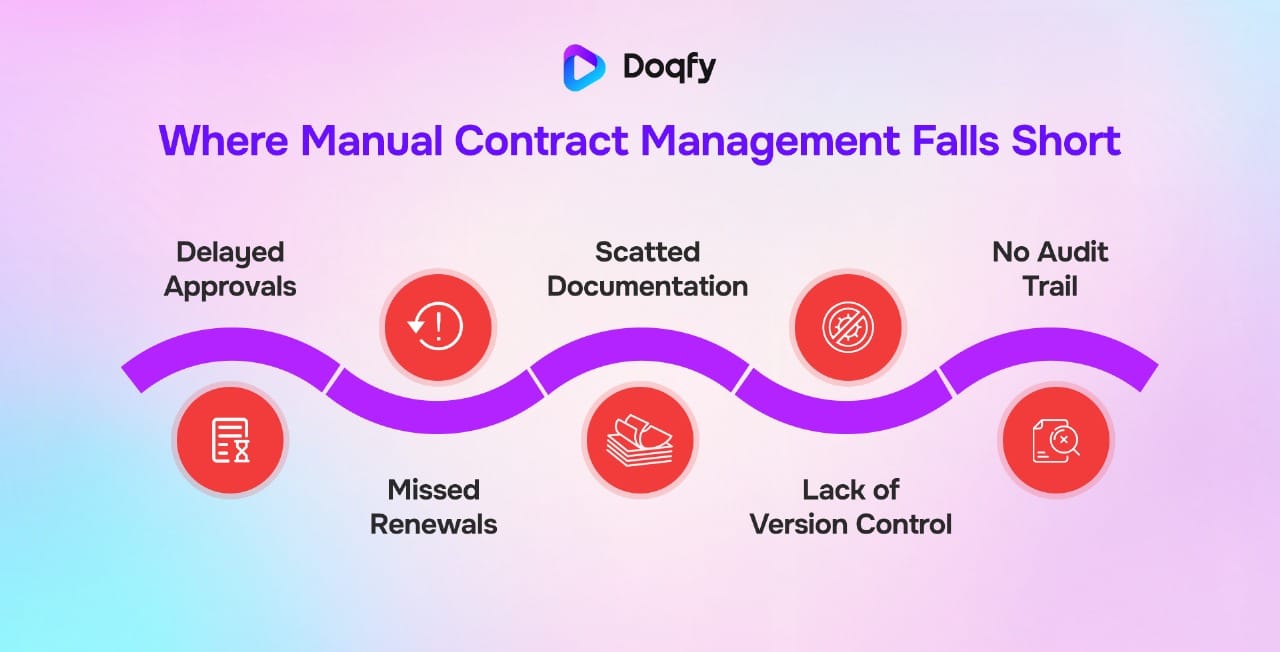 Manual contracting not only wastes time but also exposes you to financial leakage, missed opportunities, and compliance failures under these conditions.